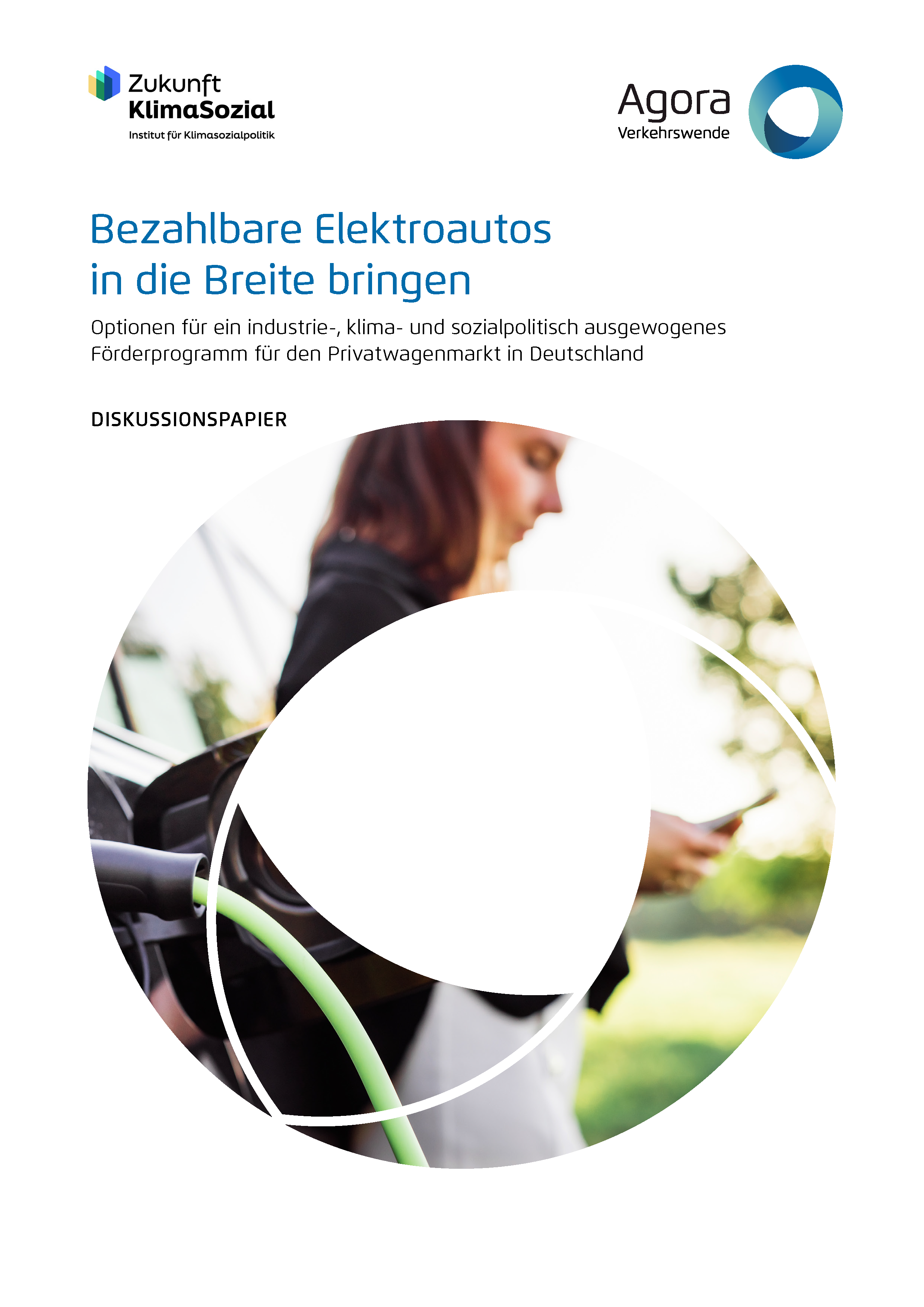 Wie kann eine Förderung von Elektroautos so gestaltet werden, dass sie den Umstieg auch für untere und mittlere Einkommen ermöglicht und gleichzeitig gut für Klima und Wirtschaft ist? Wir (Zukunft KlimaSozial zusammen mit Agora Verkehrswende) schlagen dafür ein zweistufiges Verfahren vor: Das Ziel einer ersten Förderstufe sollte es vor allem sein, E-Fahrzeuge in den Massenmarkt zu bringen und eine einkommensgestaffelte Förderung einzuführen. Eine zweite Stufe sollte dann stärker Menschen unterstützen, die besonders von hohen CO2-Preisen betroffen sind. Für die Umsetzung empfehlen wir eine Kombination aus Förderung von Fahrzeugleasing, Kaufkrediten sowie Kaufzuschüssen, jeweils differenziert nach Fahrzeugpreis und Einkommen.